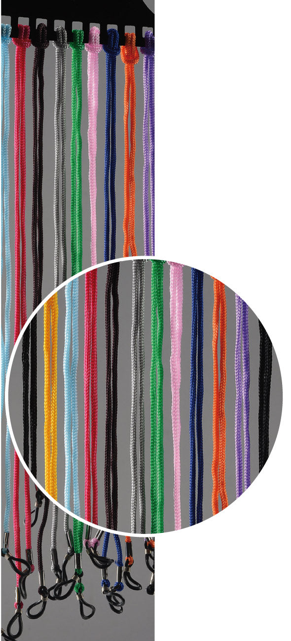Modell Brillenkordel Sortiment Baumwolle bunt Länge: 60 cm VE / 12 Stück Material: Baumwolle Ø 2,5 mm Farbe: bunt