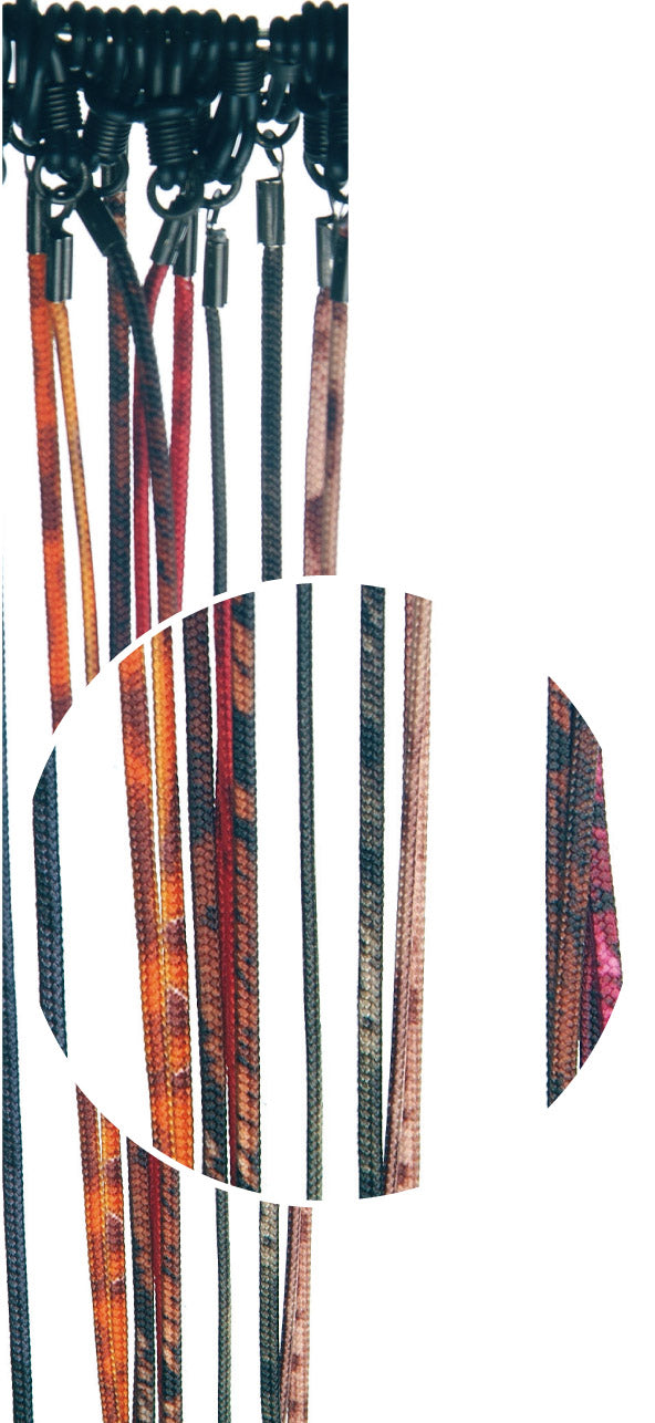 Modell Brillenkordel Sortiment FJO Nylor meliert Länge: 60 cm VE / 12 Stück Material Nylor Farbe: bunt meliert extra dünn Ø 1,5 mm Doppelschlaufen